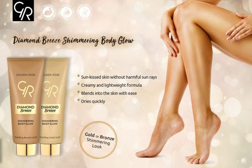 شیمر بدن دیاموند بریز گلدن رز یکی از محصولات لاین جدید دیاموند بریز از برند گلدن رز می باشد؛ این لاین با محصولات فوق براقش باعث می شود مانند الماس بدرخشید. شیمر بدن دیاموند بریز گلدن رز دارای بافتی کرمی و سبک می باشد که به راحتی روی پوست ناحیه مورد نظر بدن پخش شده و سریعاً خشک می شود تا ظاهر طلایی یا برنز براقی با ماندگاری بالا روی پوست بدن و دکلته ایجاد کند.