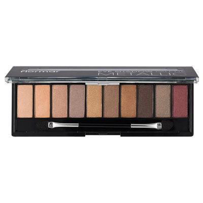 پالت سایه چشم 10 رنگ فلورمار مدل Metallic دارای 10 رنگ مختلف و متفاوت است که ترکیب کردن این رنگ ها با هم جلوه ای خارق العاده به آرایش شما می بخشد. سایه های این پالت رنگدانه های قوی دارند و با یکبار استفاده جلوه براق خود را به چشم می دهند. این مواد بافت نرم و ابریشمی دارند و به خوبی پشت پلک پخش می شوند. می توانید با تمرکز بالا با استفاده از یک براش مناسب به طراحی سایه خود بپردازید. همچنین وجود اپلیکاتور نرم و لطیف در این محصول به شما کمک می کند تا مقدار کافی از مواد را بردارید و به راحتی آن ها را پشت پلک قرار دهید.
