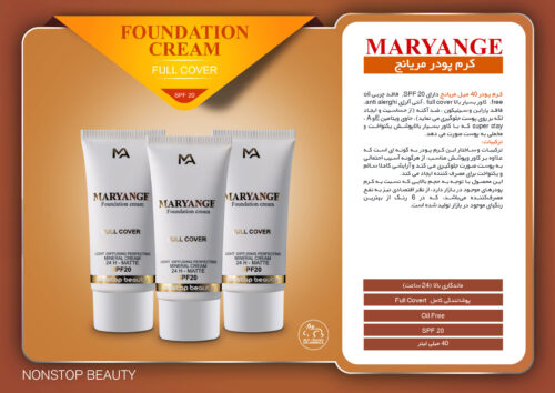 کرم پودر مریانج دارای spf 20 فاقد چربی oil free،کاور بسیار بالا،آنتی آلرژی ،فاقد پارابن و سیلیکون، ضد آکنه(از حساسیت و ایجاد لکه بر روی پوست جلوگیری می کند)حاوی ویتامین E , A، با ماندگاری بالا (24 ساعته) super stay که با کاور بالا پوشش یک دست و مخملی به پوست صورت می دهد.